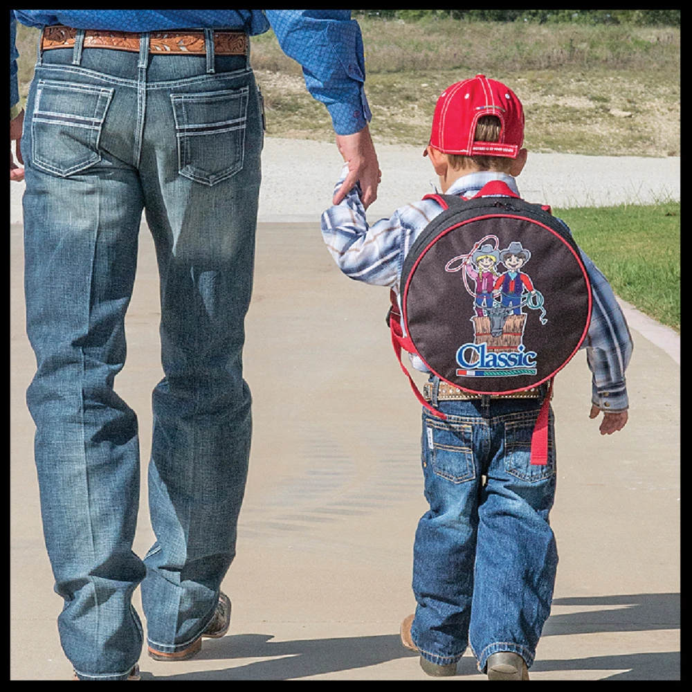Keep all your little cowboy or cowgirl’s stuff together in one place at the dummy roping or goat roping. The Kid Rope Bag has a zippered compartment that holds up to three small kid ropes. Adjustable padded backpack straps make it easy to carry.