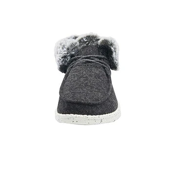 Check these out! They finally are here. These are the black high top shoes with the fur lining inside. They for sure will keep your feet warm on those cold/chilly nights. If you wear a half size, we suggest choosing the next up.Â