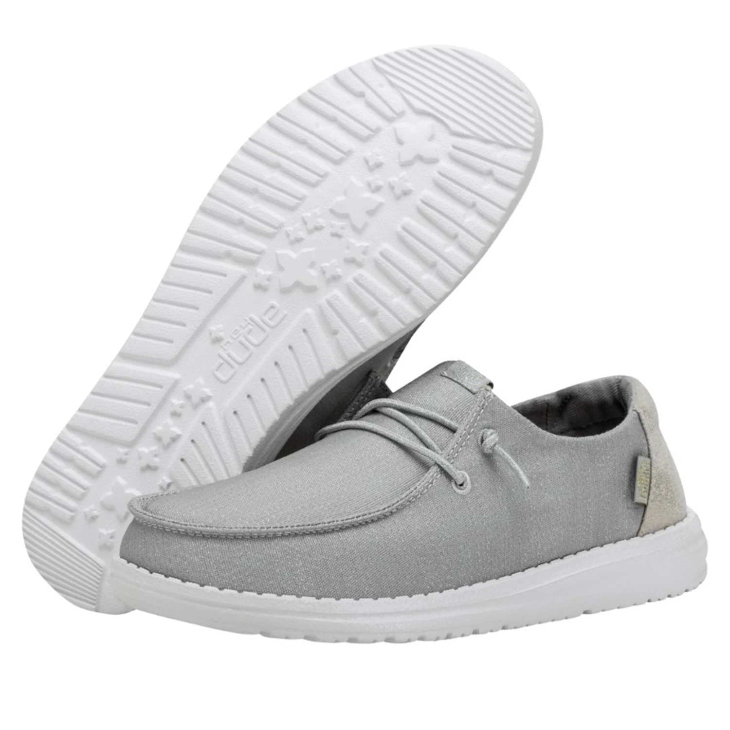 Time to smile for the camera with the sparkling Wendy Glitter collection! Featuring a durable, metallic textile upper in front of a fun glittery heel, and shines with an extra layer of foot-hugging foam. Lined with a light cotton-blend lining for lustrous strides.