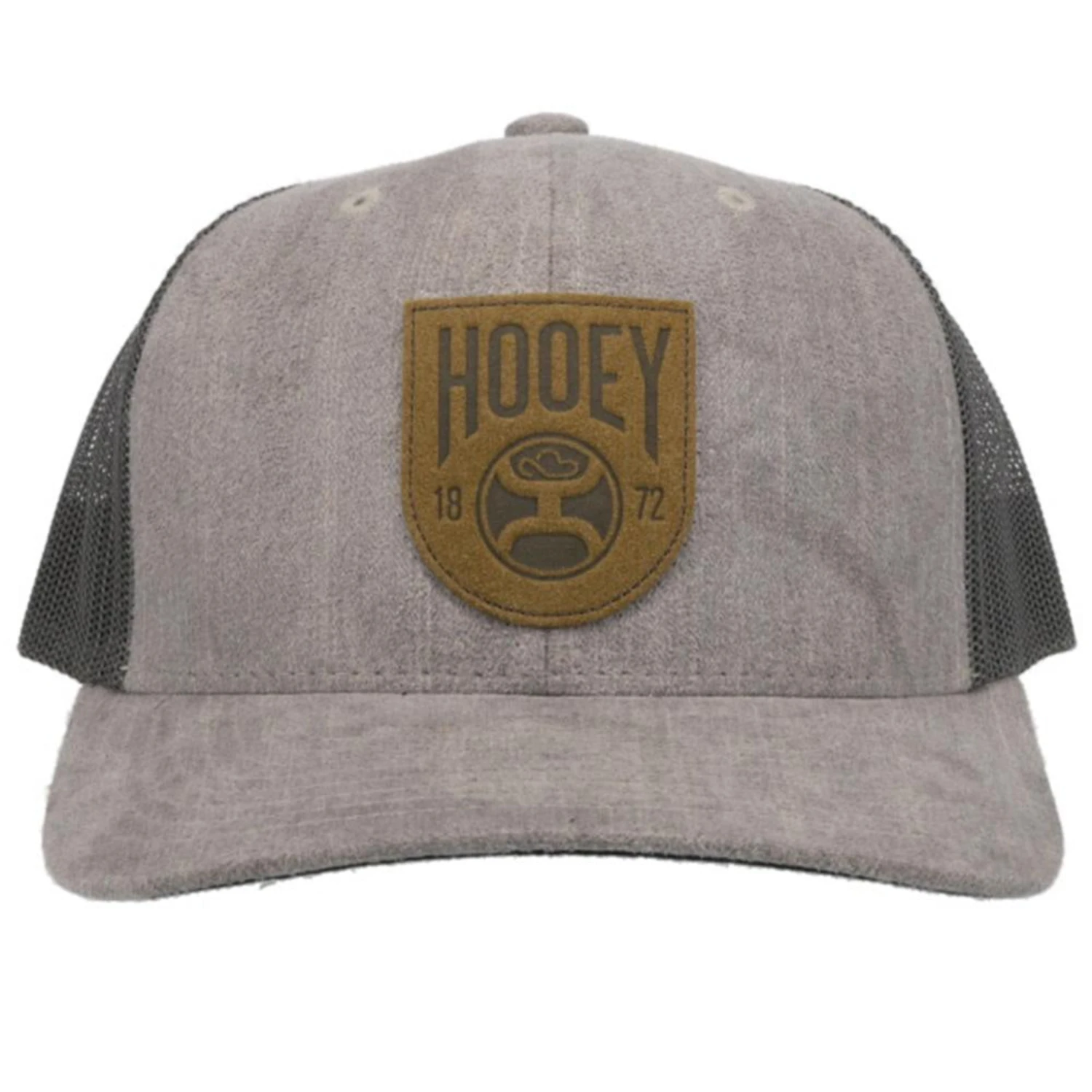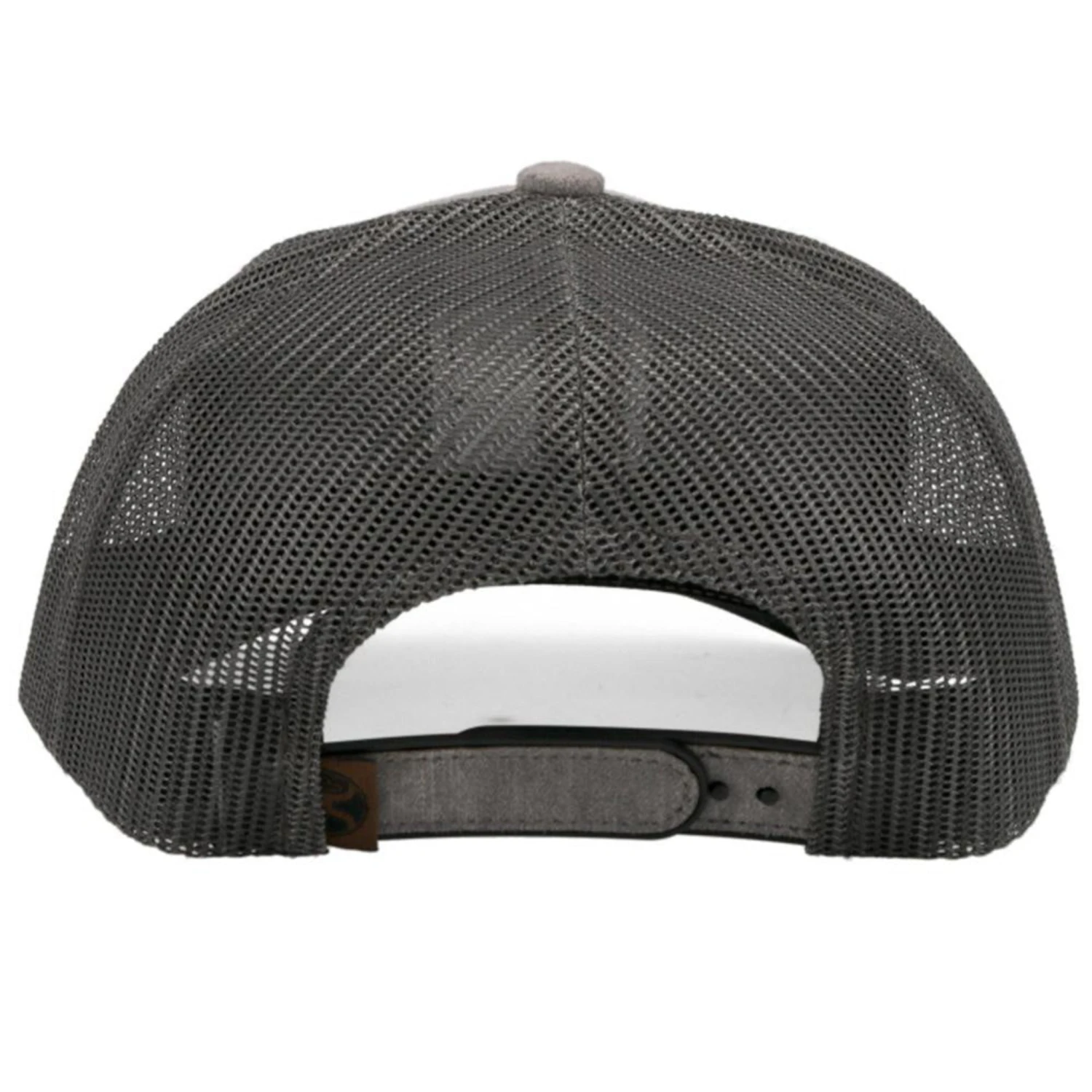 This is a 6 panel cap in grey and features a brown Bronx patch. The mesh snapback is charcoal and has a curved bill.