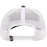 This retro looking cap can go with work clothes or dress clothes! Navy blue front with a white logo and a white mesh back. One size fits all!