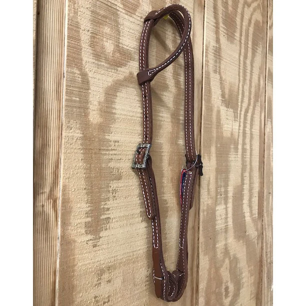 This oiled 5/8″ one ear features basket weave tooling with a scrolled antiqued silver conway buckle. The oiled finish is going to keep the leather soft and flexible.