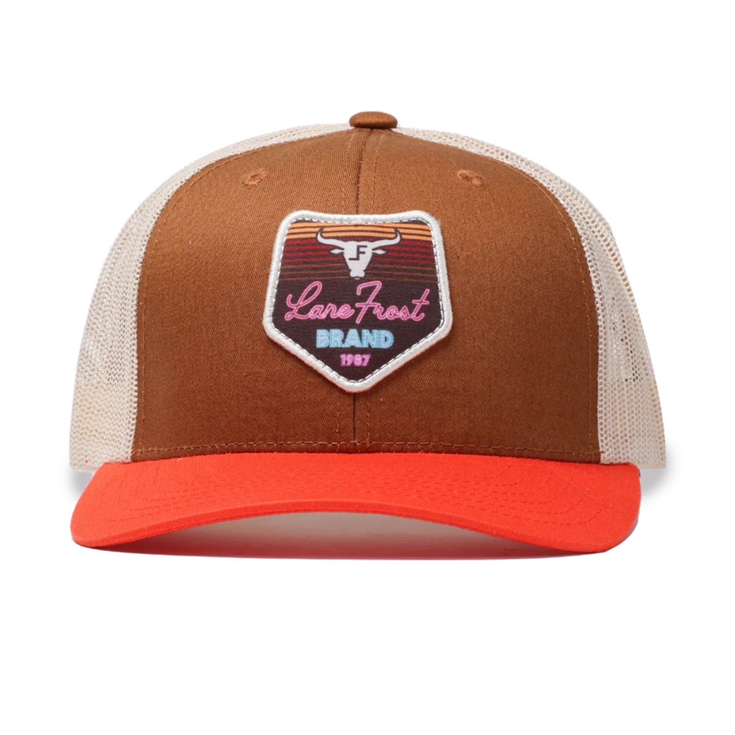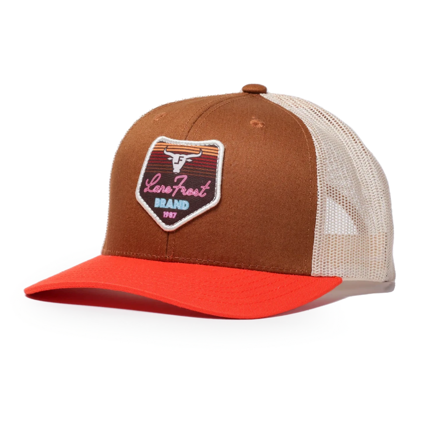 Stand out in this bold retro themed label cap that sports the Lane Frost Brand. Our Lane Frost caps are known for there quality and with being adjustable, it give you that perfect fit!Â