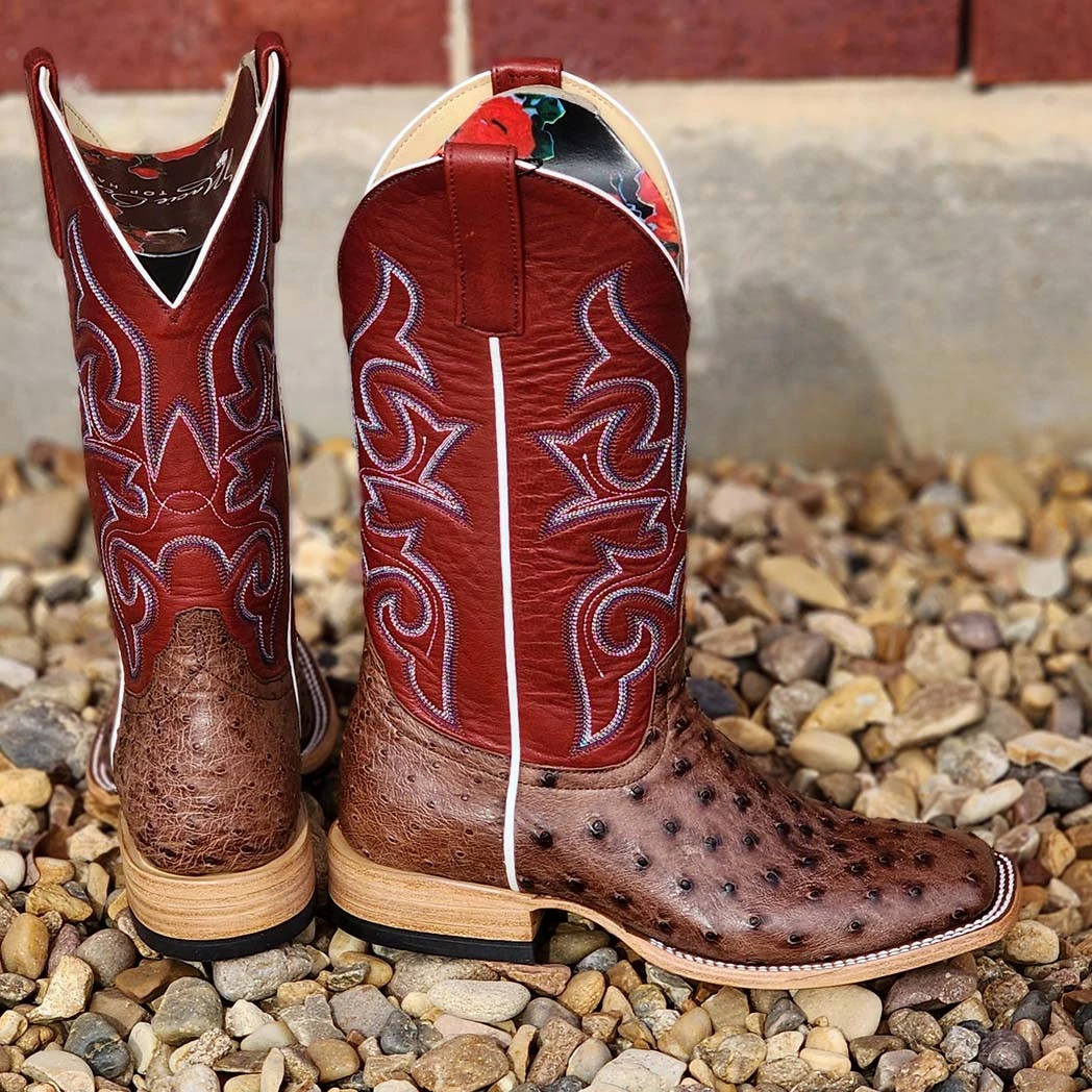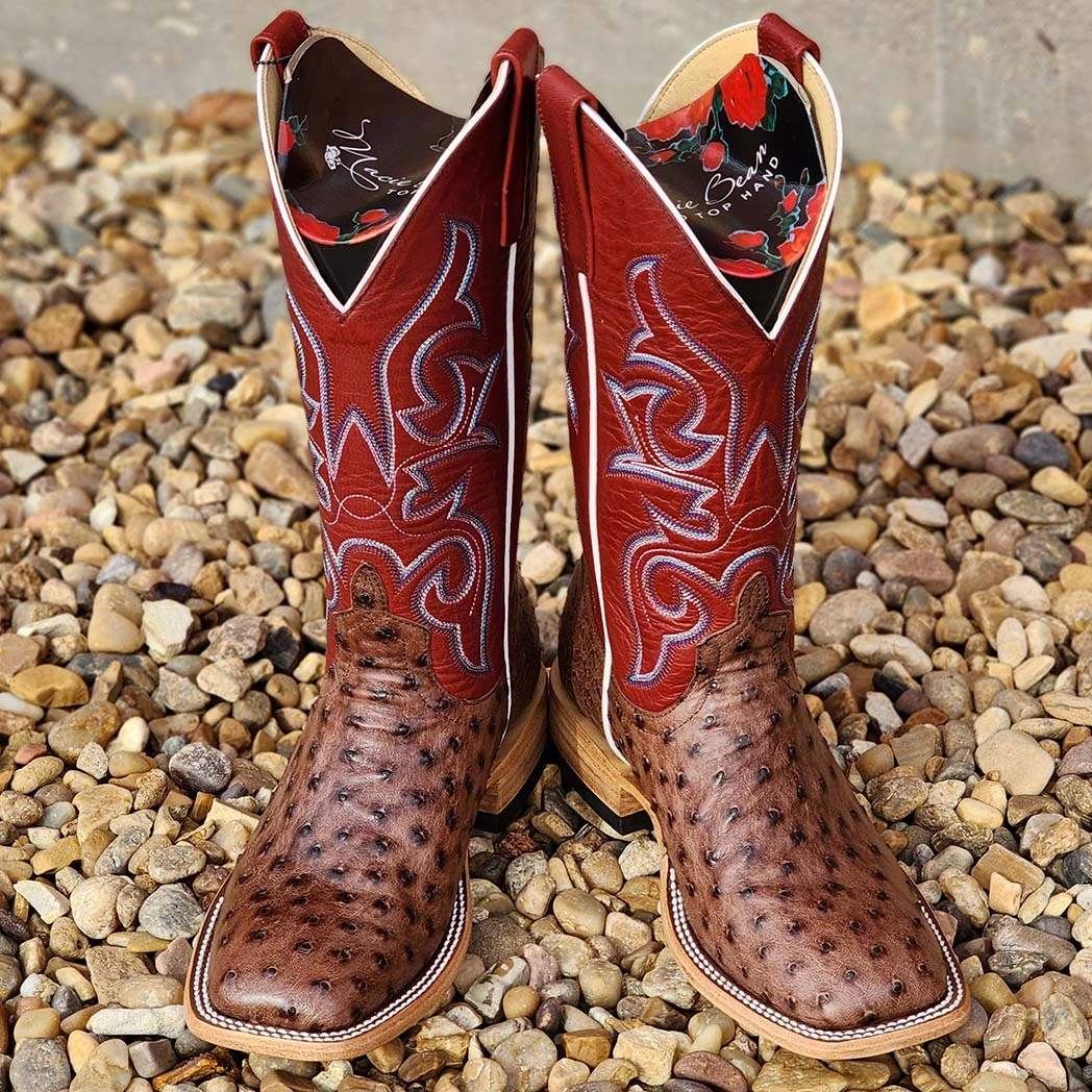 These beautiful tobacco colored full quill ostrich boots are classy and durable. They will take you from the office to the arena.Â