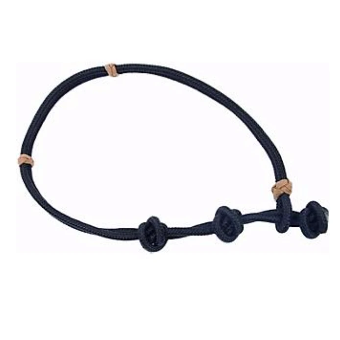 Mustang Roper’s Neck Rope-Round braided nylon Roper’s neck rope is tied with three adjustable knots and a sliding honda. The sliding honda makes adjustments quick and easy. Finished with contrasting buttons. Size: 3/4″ x 3.5′