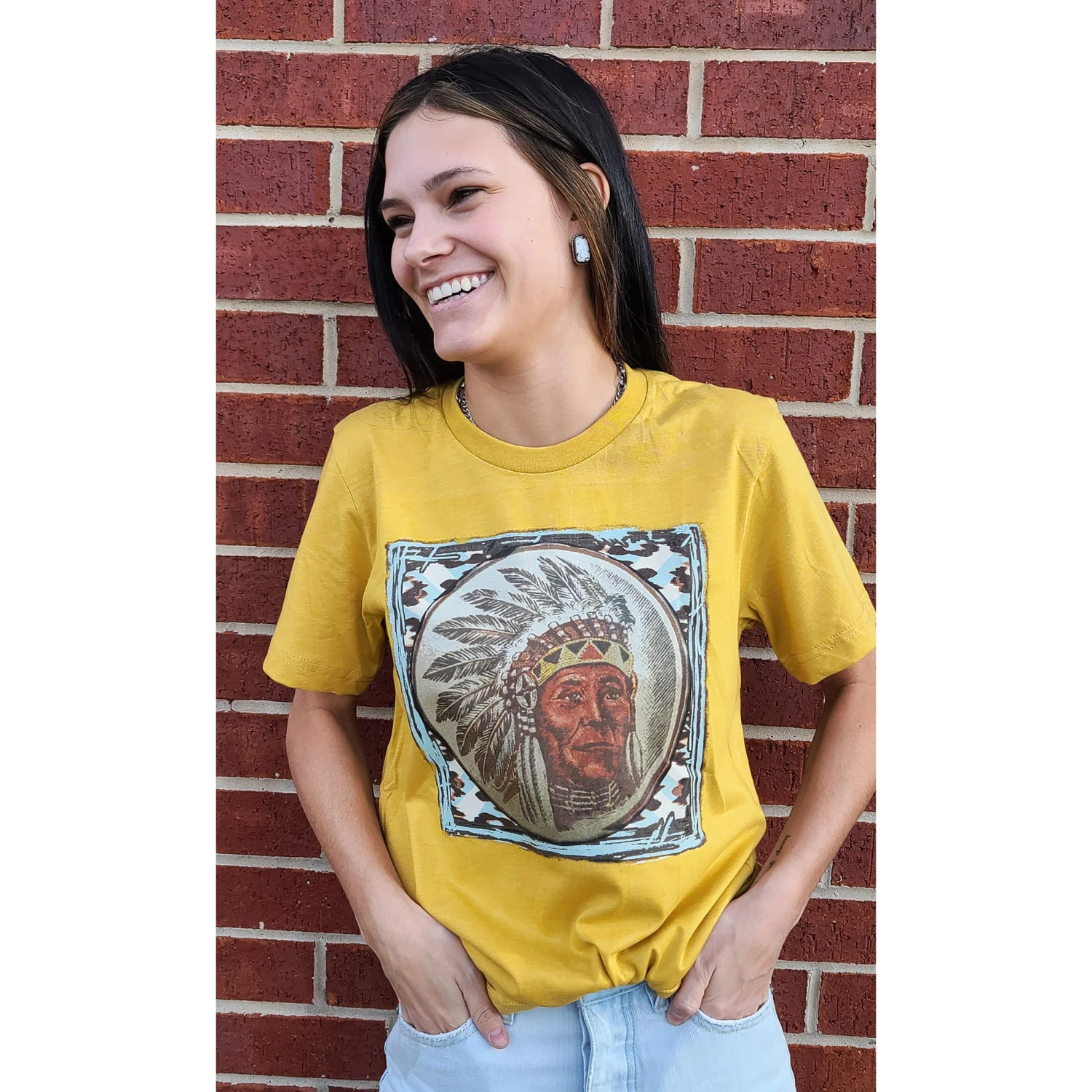 We just love this tee here at the Edge. Dress this tee up with all your favorite jewelry and you will turn heads.Â