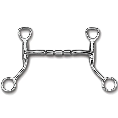Stainless Steel 5″ HBT Shank with Sweet Iron Mullen Triple Barrel (MB 32-3, Level 2) Copper Inlay. This mouthpiece is made of polished Sweet Iron which naturally oxidizes or rusts. Harmless to horses, it has a sweet taste and promotes salivation.
