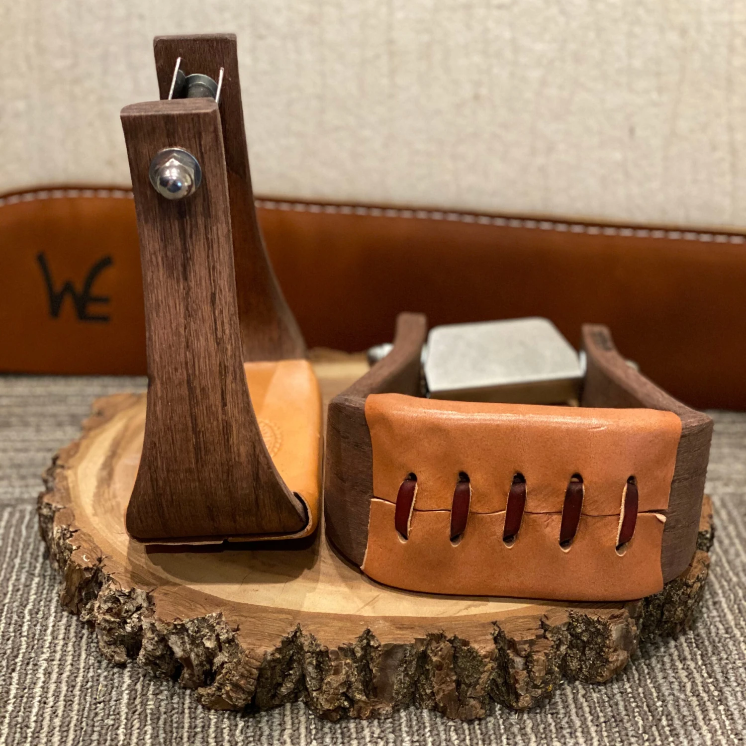 Meet The Duke, aptly named after John Wayne and the best-looking, best-riding, best-built economy stirrup on the market. A sidekick to the Nettles Stirrups Premier Line, it too was designed by cutting horse Hall of Fame trainer and problem-solving guru Ronnie Nettles. Made of five oak laminates from logs milled at the Nettles Stirrups Manufacturing Campany, The Duke is a great basic work stirrup. It is graded five stations during the building process, has rounded inside edges and is finished in a Rustic Cherry stain that blends smartly with today’s saddles. The Duke’s excellent stability and smart style makes it the best value in economy stirrups on the market.Â