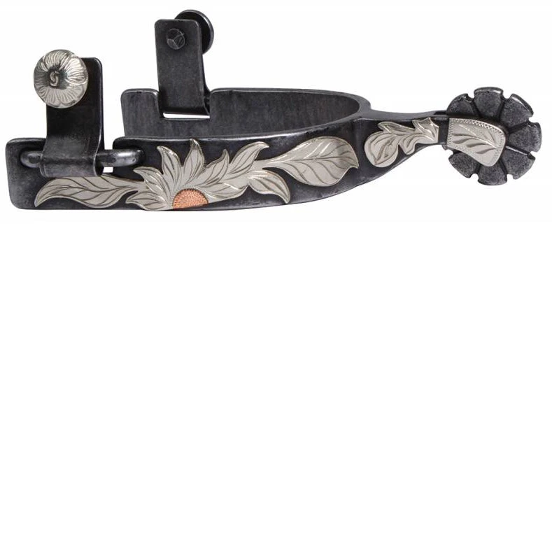 These Professional’s Choice Beautiful handcrafted spurs with a sunflower design on the 3/4″ band, with a blunt 8 point rowel are classic and functional.Â